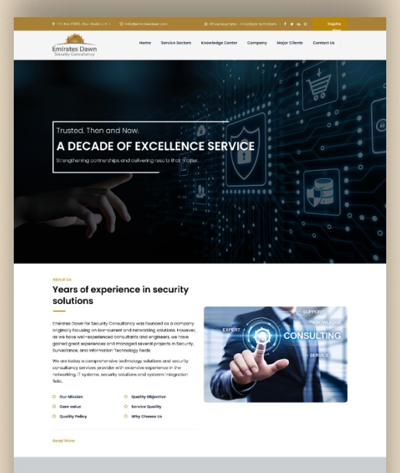 A clean, and well designed layout with a blend of dark and light theme, designed to highlight the security service consultancy in various sectors