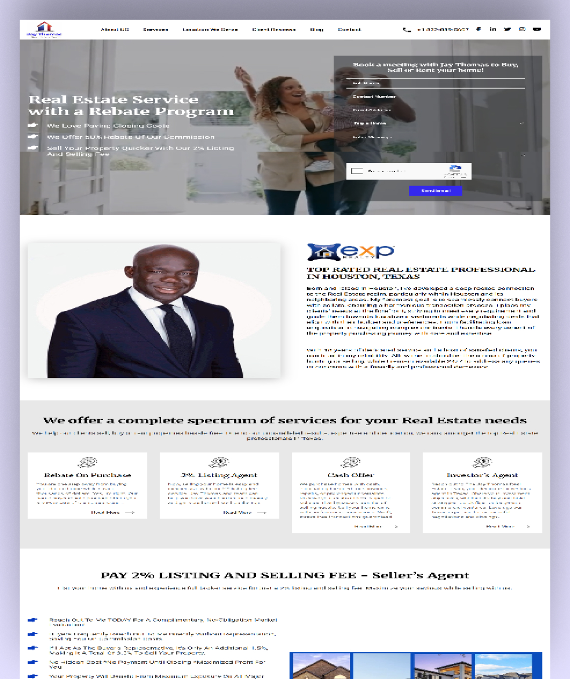 Modern, well-structured layout with information and CTA to focus a visitor's attention on the different services and benefits offered by the realtor